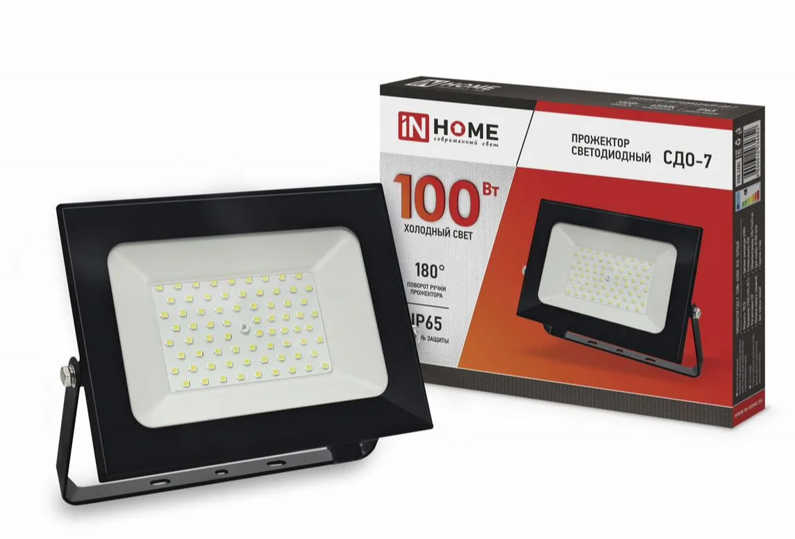 Прожектор светодиодный СДО-7 100Вт 230В 6500К IP65 черный IN HOME