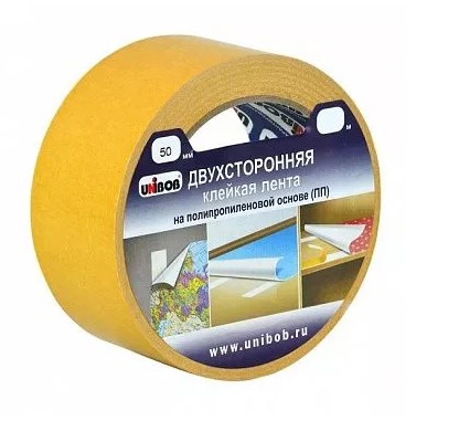 Клейкая лента двухсторонняя UNIBOB 50мм х 50м (полипропилен) инд. упаковка