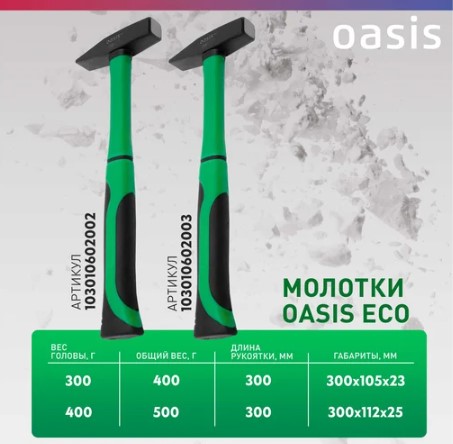 228 Молоток слесарный с обрезиненной фибергласовой рукояткой Oasis Eco 300 г_103010602002