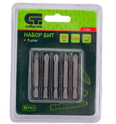 Набор бит PH2x50, сталь CrMo, 5 шт.// Сибртех