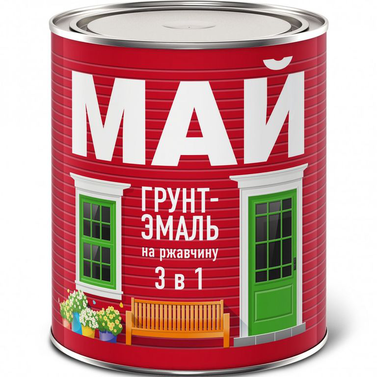 АКЦИЯ Грунт-эмаль на ржавчину 3 в 1 (0,8кг) Красная (14шт/упак) Май
