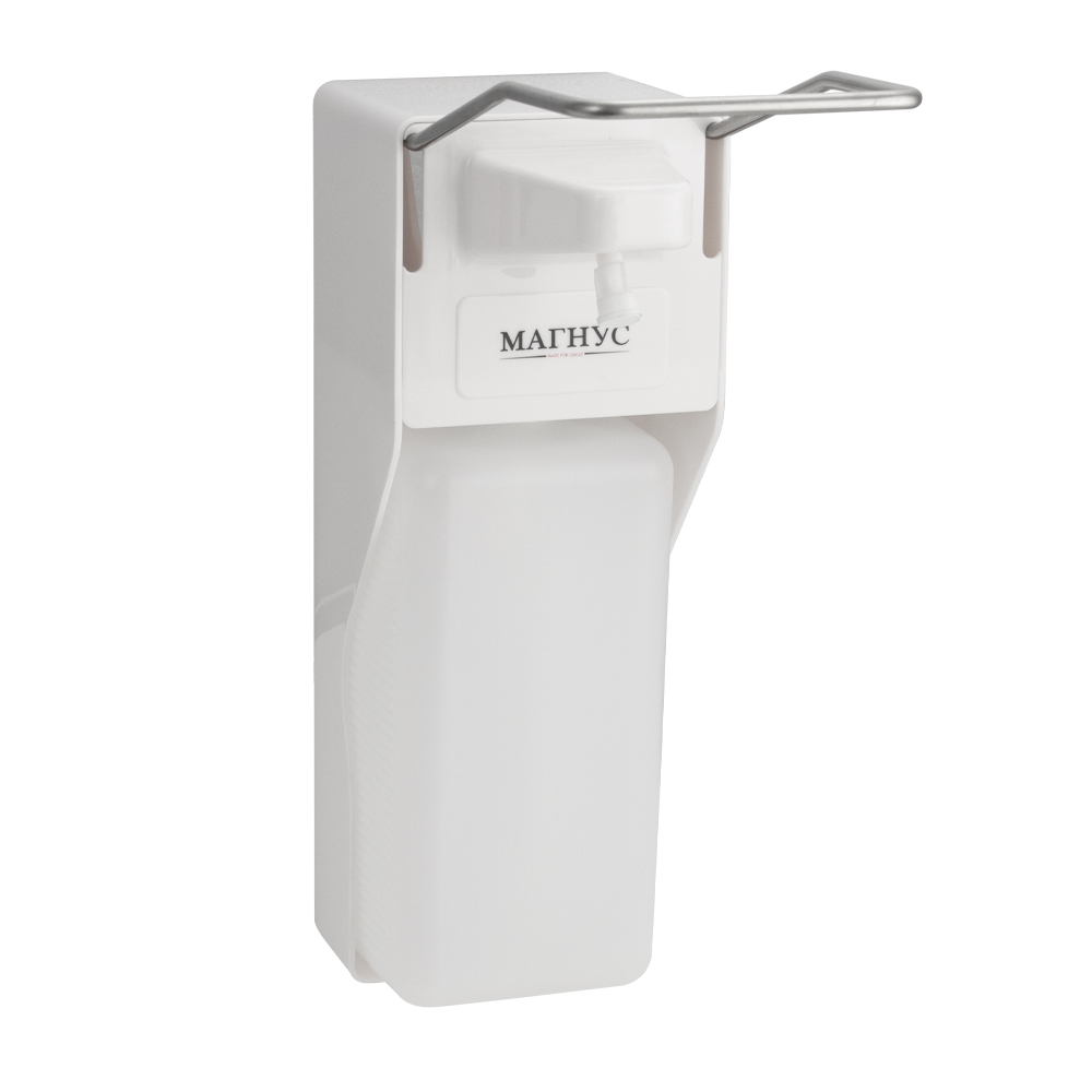 697 MAGNUS Дозатор жидкого МЫЛА и ДЕЗИНФЕКЦИИ ЛОКТЕВОЙ, пластик АБС, БЕЛЫЙ, 1000 мл