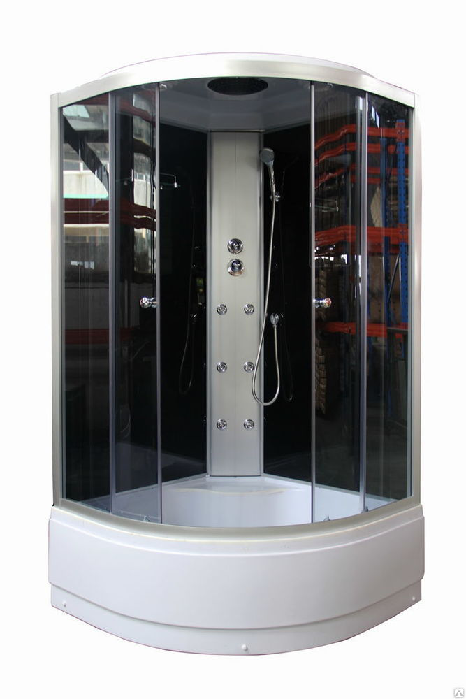 УЦЕНКА Гидробокс NA-126-3A Правый  (900*1000*2150) Квад с Массажем, Чёрное Прозрачное, Мелкий поддон