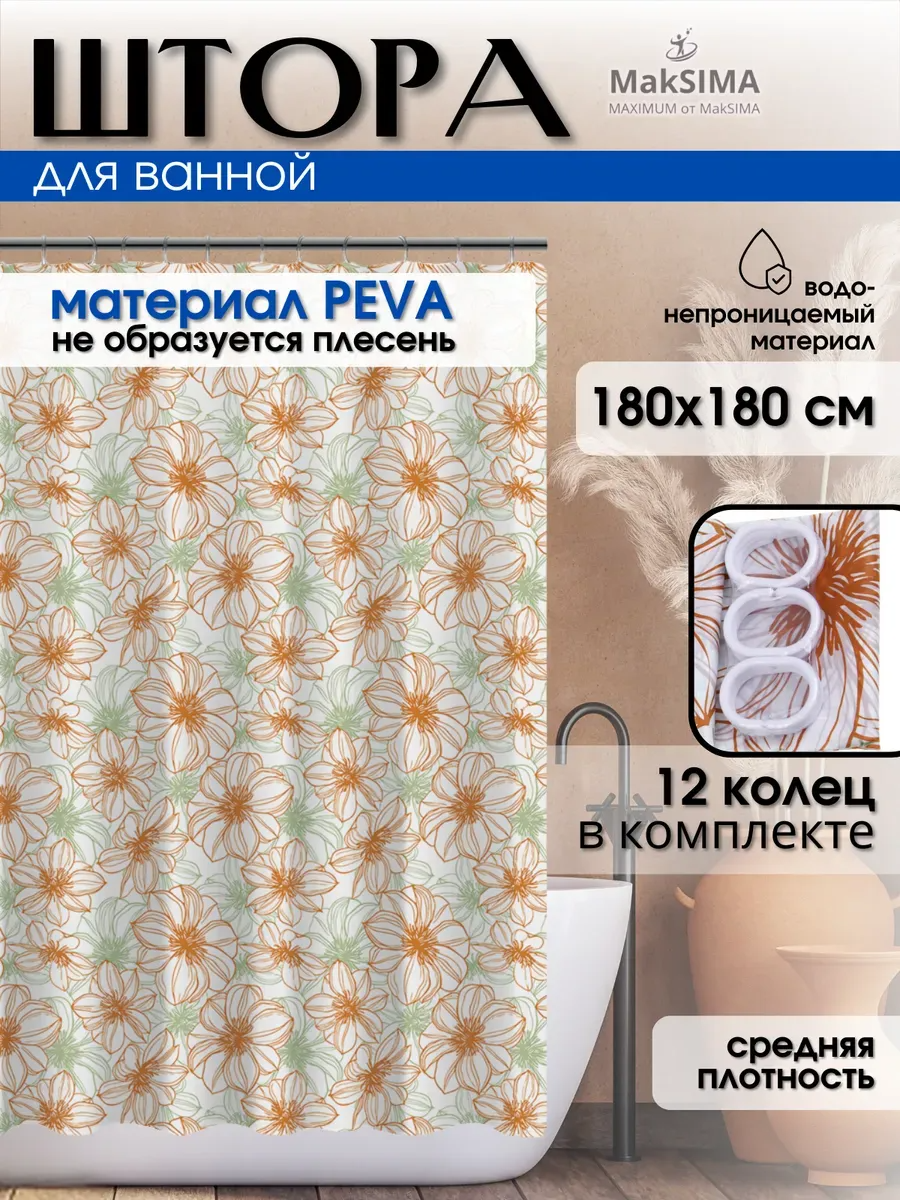 шторка для ванной ПЕВА 30 г/м2 180x180см Цветы