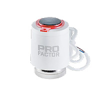 Приводится в действие от комнатного термостата или специализированного контроллера. Термоэлектрический сервопривод PROFACTOR работает бесшумно и имеют низкое энергопотребление.